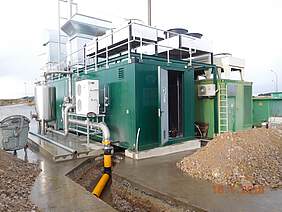 Das zusätzliche BHKW für die Flexibilisierung der Biogasanlage Klosteregeln ist geliefert. Somit liegt jetzt eine zweifache Überbauung vor. Um die geänderte Wärmeproduktion der BHKW für die verschiedenen industriellen Wärmeverbraucher entsprechend zur Verfügung stellen zu können wurden 2 Pufferspeicher mit je 80m³ planerisch vorgesehen. Die über die Jahre gewachsene Wärmeverteilung wurde komplett überarbeitet. In einem dezentral aufgestellten Container kann nach Fertigstellung die Wärmeabgabe an alle Verbraucher reguliert werden. Die bisherigen Probleme bei der Wärmeabgabe, die bis zum Herunterfahren des BHKW führten sind somit gelöst.