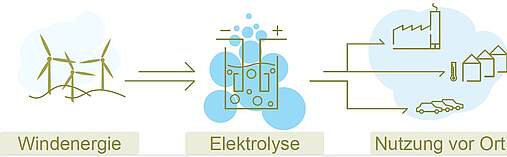 | Hydrogen production | 1 MW electric; 130 t/a green hydrogen with electricity from a wind farm |